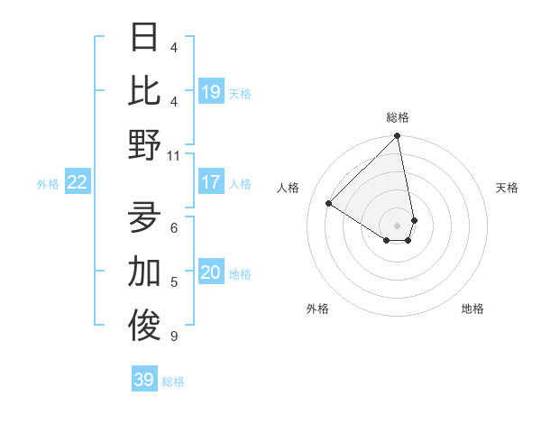日比野 夛加俊さんの総格は39画の5点!