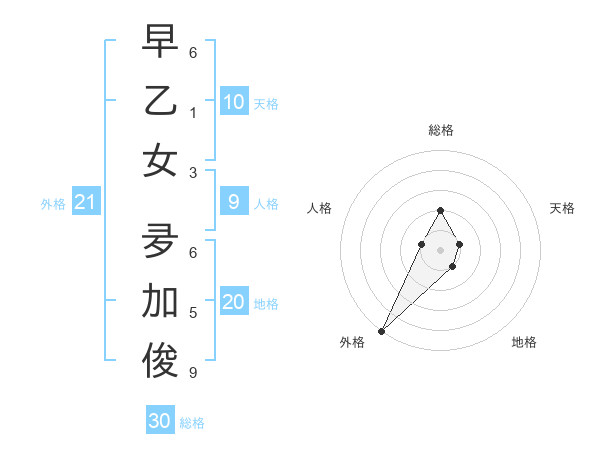 早乙女 夛加俊さんの総格は30画の2点!