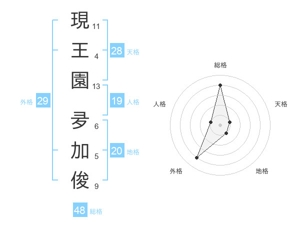 現王園 夛加俊さんを姓名の画数から五運を鑑定