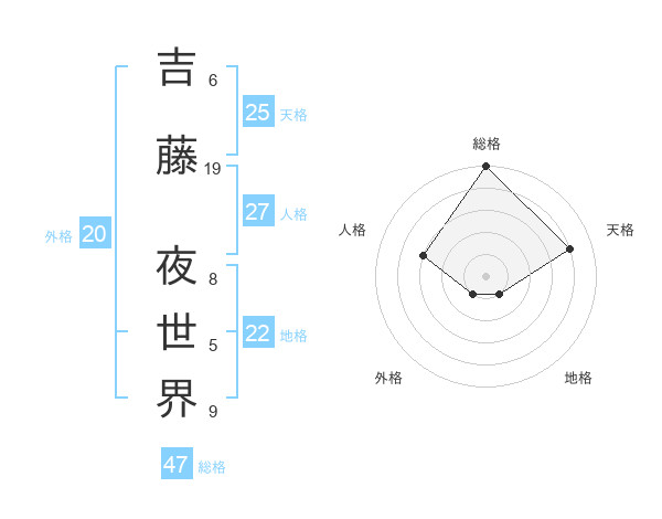 吉藤 夜世界さんを姓名の画数から五運を鑑定