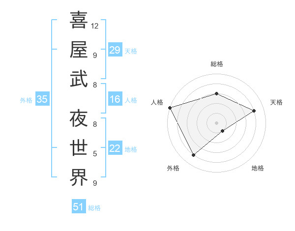 喜屋武 夜世界さんを姓名の画数から五運を鑑定