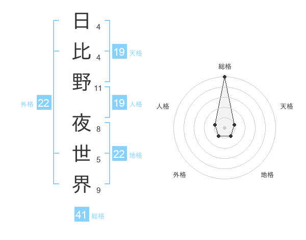 日比野 夜世界さんの総格は41画の5点!