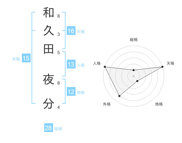 和久田 夜分さんを姓名の画数から五運を鑑定