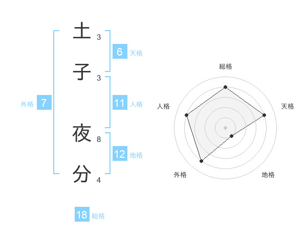 土子 夜分さんの総格は18画の4点!