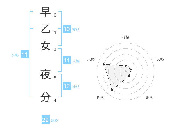 早乙女 夜分さんを姓名の画数から五運を鑑定