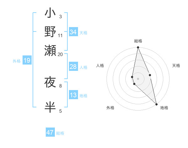 小野瀬 夜半さんの総格は47画の5点