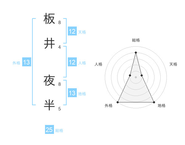 板井 夜半さんの天格は12画の1点!