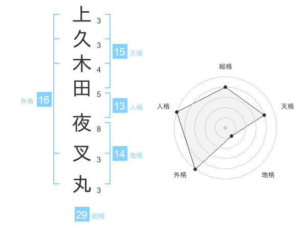 上久木田 夜叉丸さんの外格は16画の5点