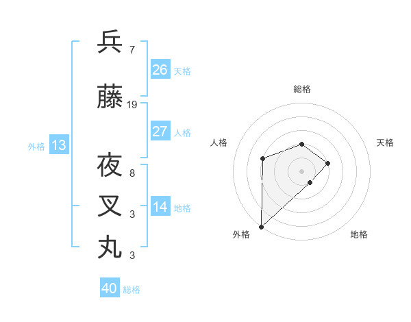 兵藤 夜叉丸さんを姓名の画数から五運を鑑定
