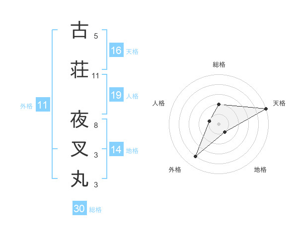 古荘 夜叉丸さんを姓名の画数から五運を鑑定