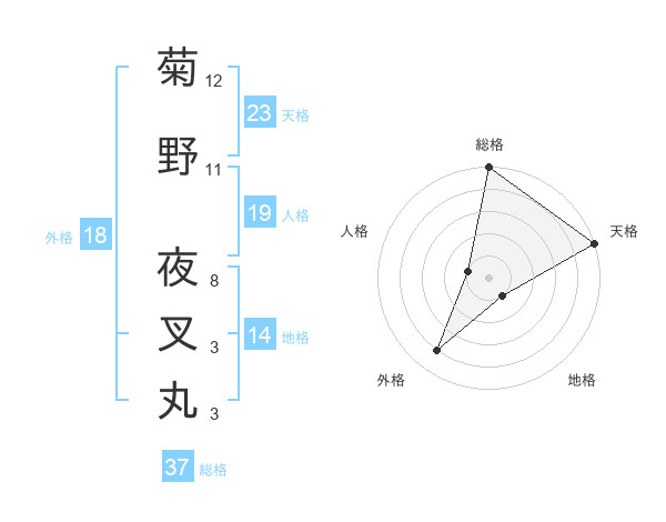 菊野 夜叉丸さんの総格は37画の5点!