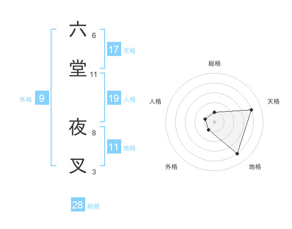 六堂 夜叉さんの総格は28画の1点!