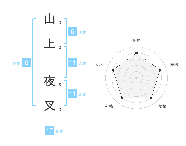 山上 夜叉さんを姓名の画数から五運を鑑定