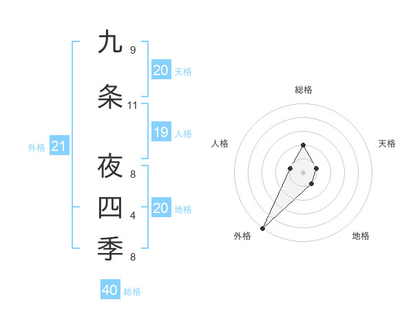 九条 夜四季さんを姓名の画数から五運を鑑定