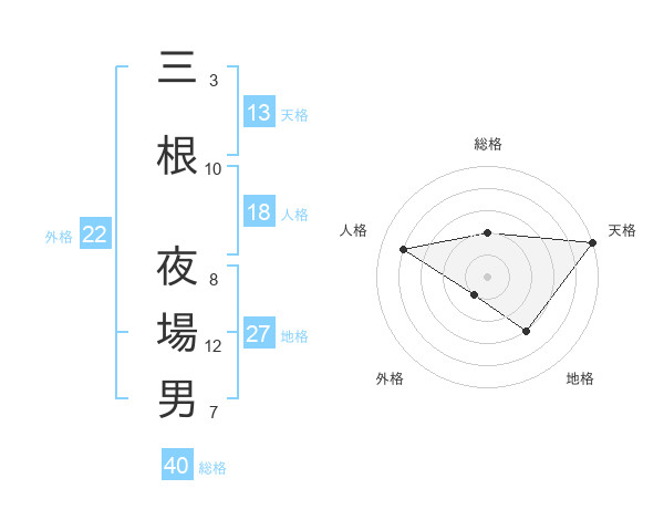 三根 夜場男さんの総格は40画の2点!
