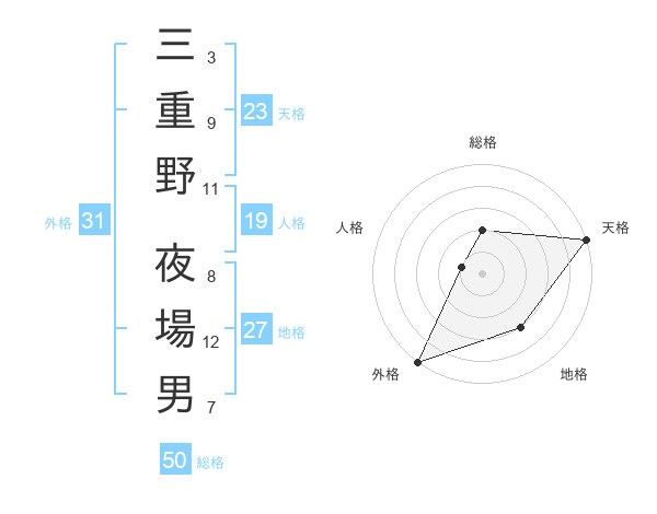 三重野 夜場男さんを姓名の画数から五運を鑑定