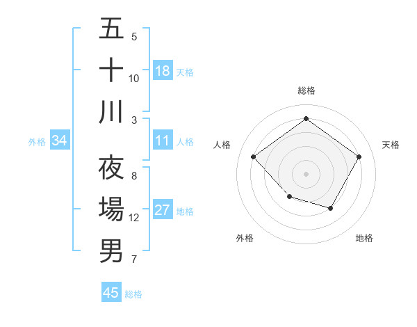 五十川 夜場男さんの総格は45画の4点!