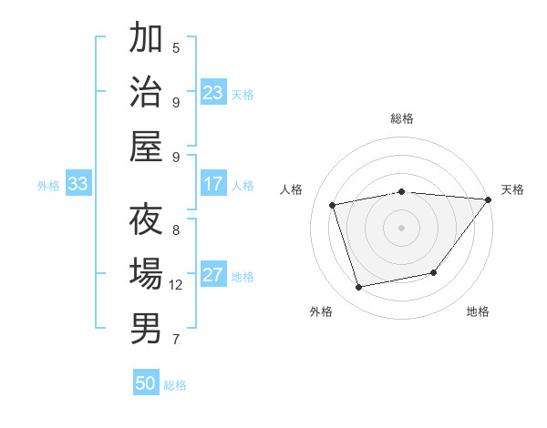 加治屋 夜場男さんを姓名の画数から五運を鑑定