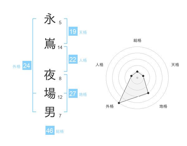 永嶌 夜場男さんを姓名の画数から五運を鑑定