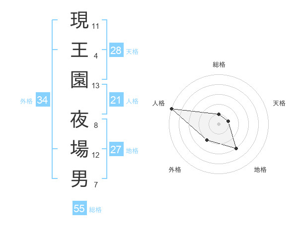 現王園 夜場男さんを姓名の画数から五運を鑑定