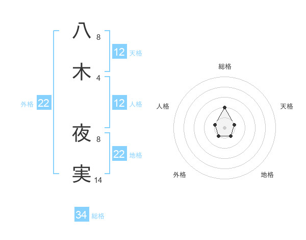 八木 夜実さんの地格は22画の1点!