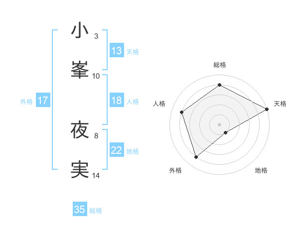小峯 夜実さんを姓名の画数から五運を鑑定