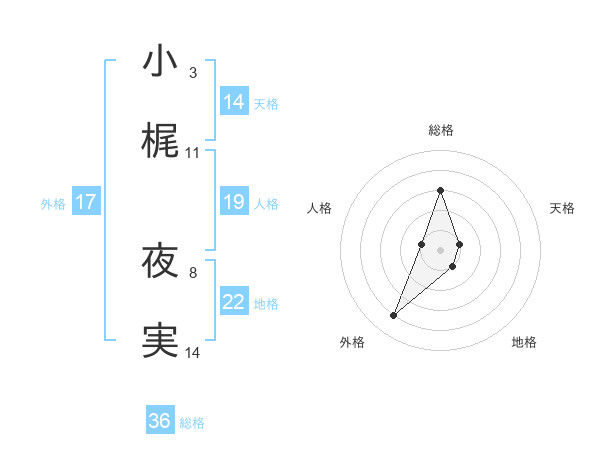 小梶 夜実さんを姓名の画数から五運を鑑定
