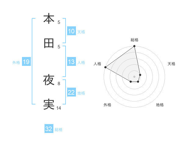 本田 夜実さんの総格は32画の5点!