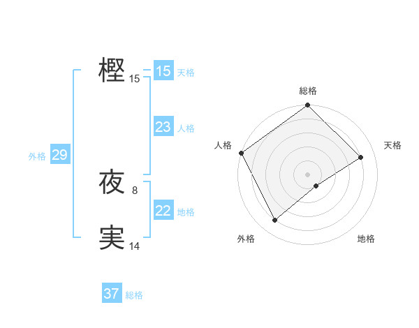 樫 夜実さんの総格は37画の5点!