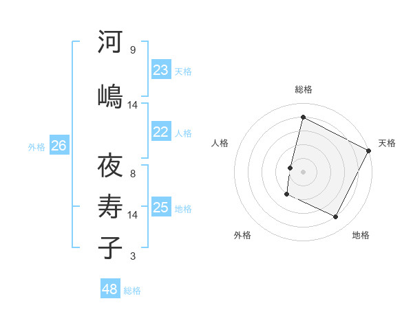 河嶋 夜寿子さんを姓名の画数から五運を鑑定