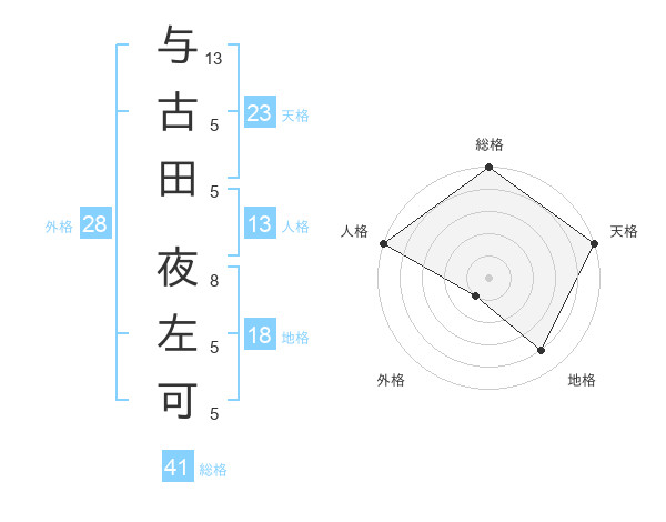 与古田 夜左可さんを姓名の画数から五運を鑑定