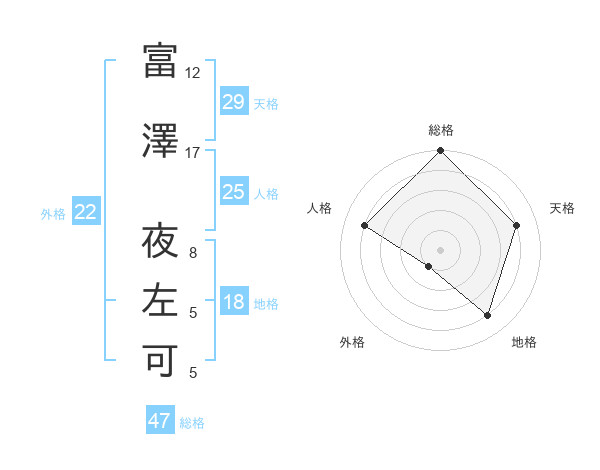 富澤 夜左可さんの総格は47画の5点!