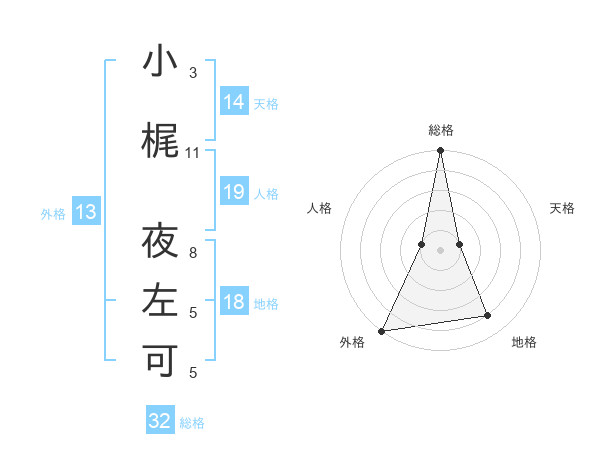 小梶 夜左可さんを姓名の画数から五運を鑑定