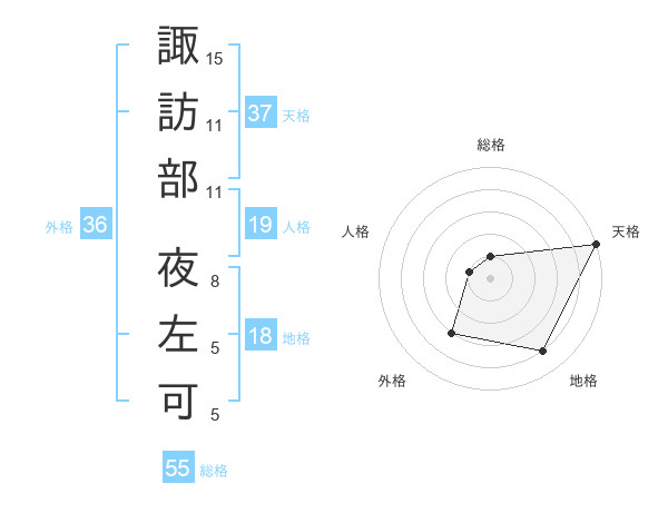 諏訪部 夜左可さんを姓名の画数から五運を鑑定