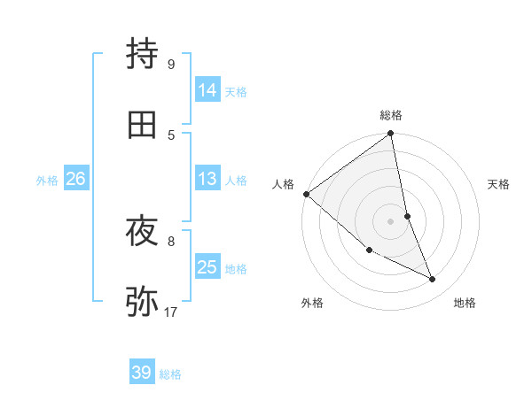 持田 夜弥さんの天格は14画の1点!