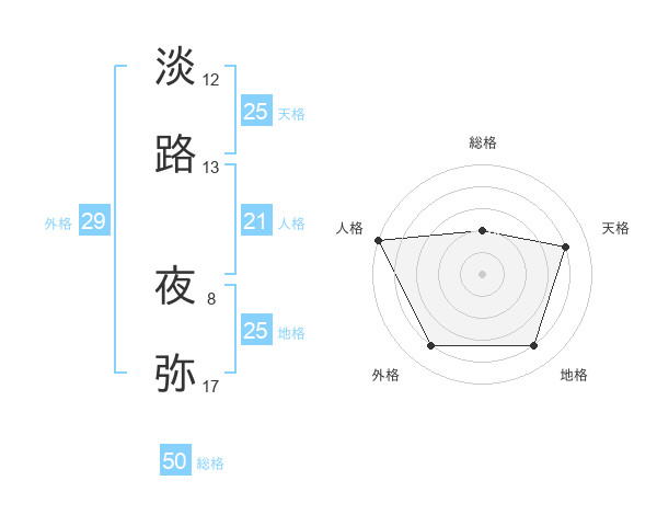 淡路 夜弥さんを姓名の画数から五運を鑑定