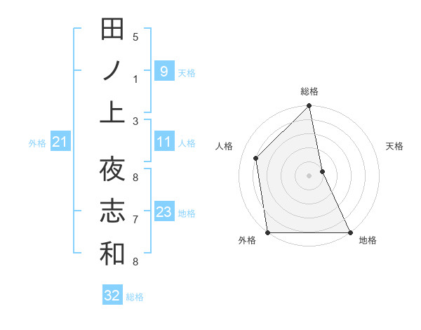 田ノ上 夜志和さんを姓名の画数から五運を鑑定