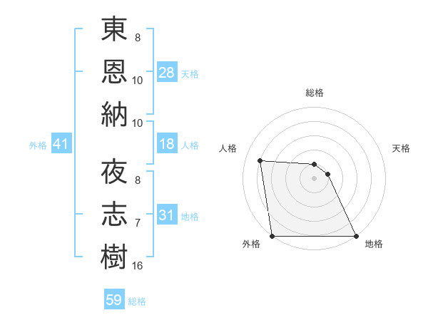 東恩納 夜志樹さんの外格は41画の5点!