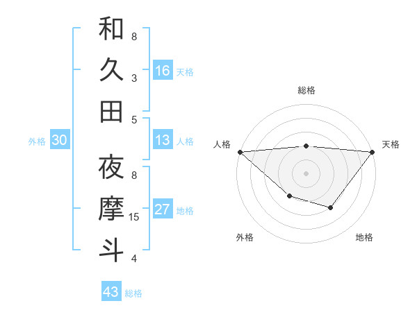 和久田 夜摩斗さんを姓名の画数から五運を鑑定
