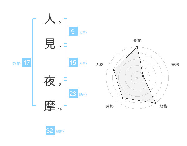 人見 夜摩さんの総格は32画の5点!