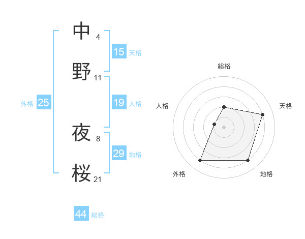 中野 夜桜さんの天格は15画の4点!