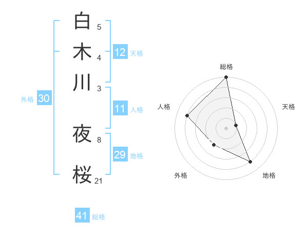 白木川 夜桜さんを姓名の画数から五運を鑑定