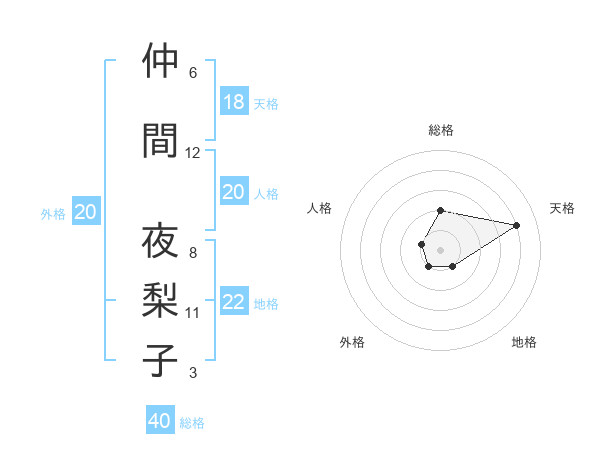 仲間 夜梨子さんの総格は40画の2点!