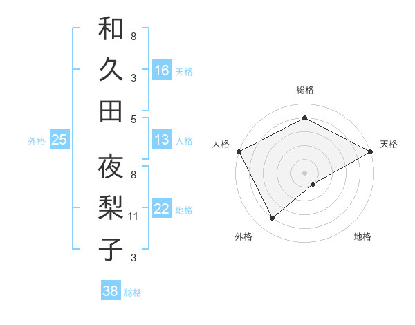 和久田 夜梨子さんを姓名の画数から五運を鑑定