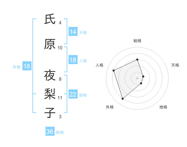 氏原 夜梨子さんの外格は18画の4点