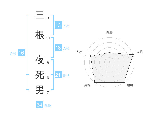 三根 夜死男さんを姓名の画数から五運を鑑定