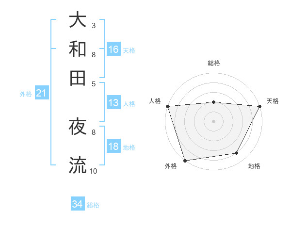 大和田 夜流さんの外格は21画の5点!