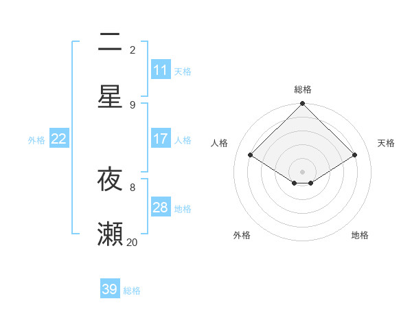 二星 夜瀬さんの外格は22画の1点!