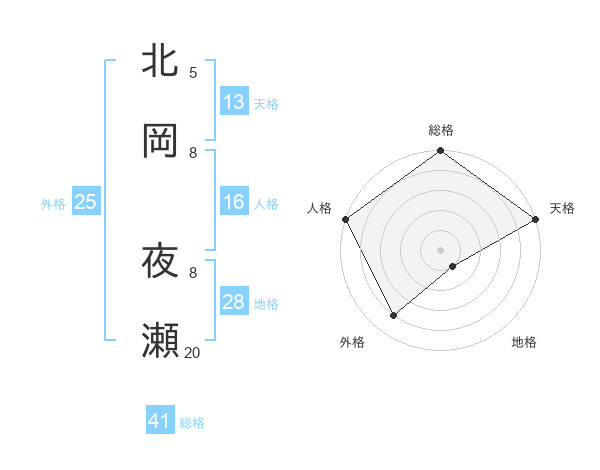 北岡 夜瀬さんの天格は13画の5点!
