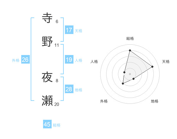 寺野 夜瀬さんの総格は45画の4点!